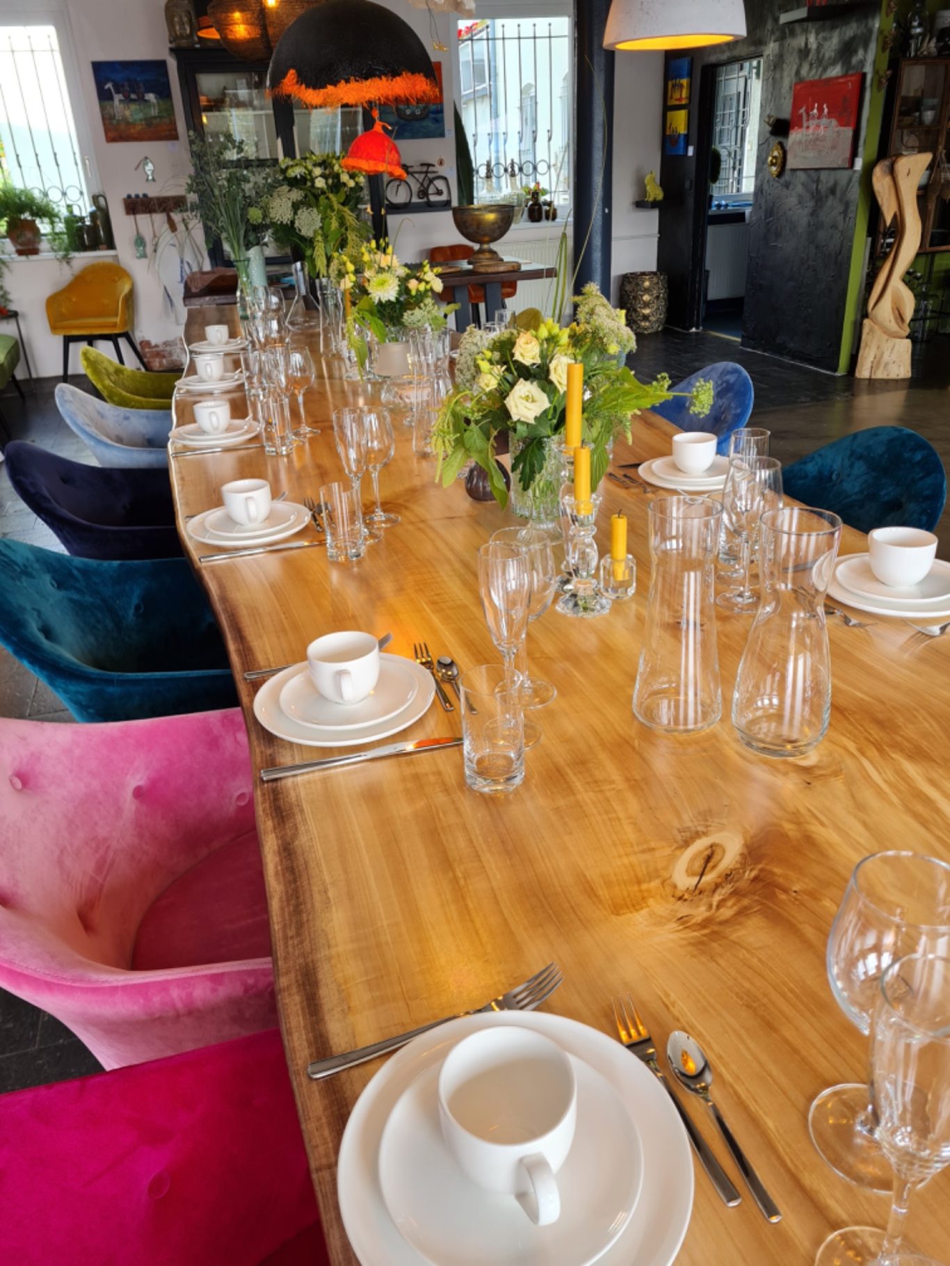In entspannter Runde nutzen die Gäste Angebote aus meinen kreativen Workshops, bevor sie in gemütlicher Atmosphäre den Wein und das Essen genießen. Wer spielen kann, setzt sich an den 152 Jahre alten Blüthner Flügel und fängt an zu spielen, andere bringen ihre eigenen Instrumente mit.